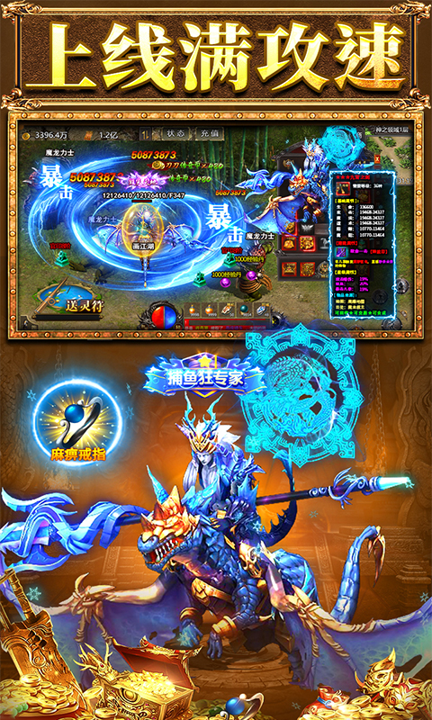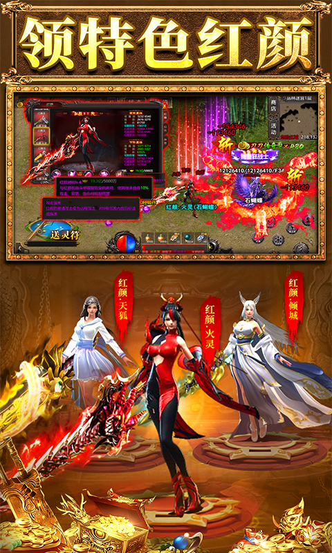 一款三职业攻速版本,上线送自动回收和自动拾取,装备回收给灵符,首冲可以免费激活,无需充值,游戏真冲红卡可以抵扣真冲,全新的版本玩法。还新增了众多游戏特色,全新的画面风格,新增了红颜玩法、钓鱼玩法、反红包玩法、等一系列特色手游版本!